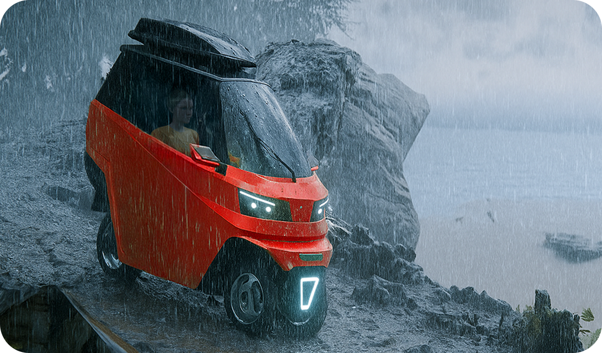 From chaotic mornings to unpredictable monsoons, urban life brings its own rhythm—often fast, often unpredictable. While zero-emission options are growing, we saw what others overlooked: safety, comfort, and real-world practicality were still missing for millions of commuters. That gap became our spark.